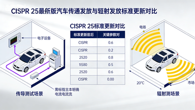 但实际工作中,很多汽车电子企业对GB/T 18655的适用边界、核心测试项目、限值分级,以及其与国际标准的等效关系,都存在认知偏差。本文将系统性拆解GB/T 18655的技术内核、完整测试要求与典型应用场景,帮你精准判断:你的产品是否必须通过该标准测试?又该如何制定高效的测试与整改方案?